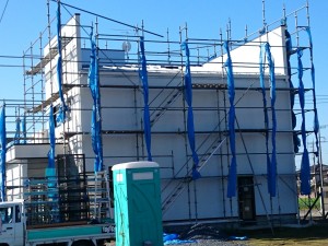新築工事N様邸では、外壁工事が残すところ、東面のみとなりました。